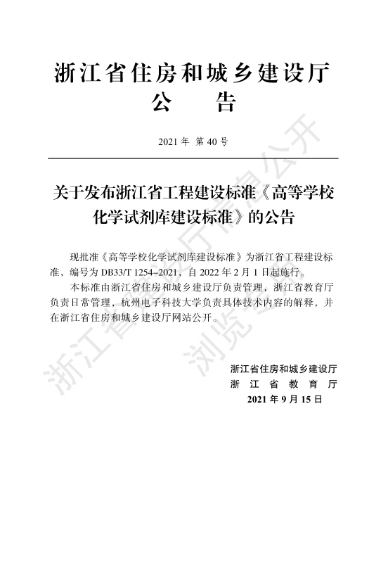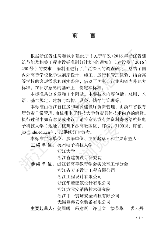 浙江省教育廳、浙江省建設(shè)廳標(biāo)準(zhǔn)站、省環(huán)境科學(xué)設(shè)計研究院、省安監(jiān)局安全科學(xué)研究院、省標(biāo)準(zhǔn)化研究院和省消防總隊防火部的權(quán)威專家就標(biāo)準(zhǔn)的初稿內(nèi)容進行了論證,會后形成了標(biāo)準(zhǔn)送審稿。