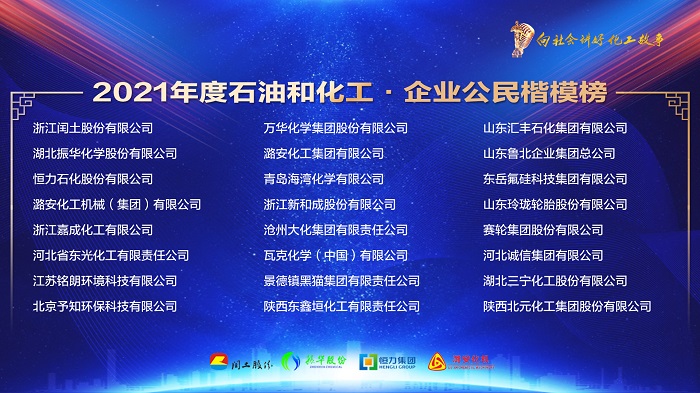 發(fā)布盛典上,同時(shí)發(fā)布了《2021年度石油和化工行業(yè)責(zé)任關(guān)懷輿情報(bào)告》和2021年度中國石油和化工行業(yè)企業(yè)公民楷模榜,萬華化學(xué)、浙江閏土等50家企業(yè)上榜。