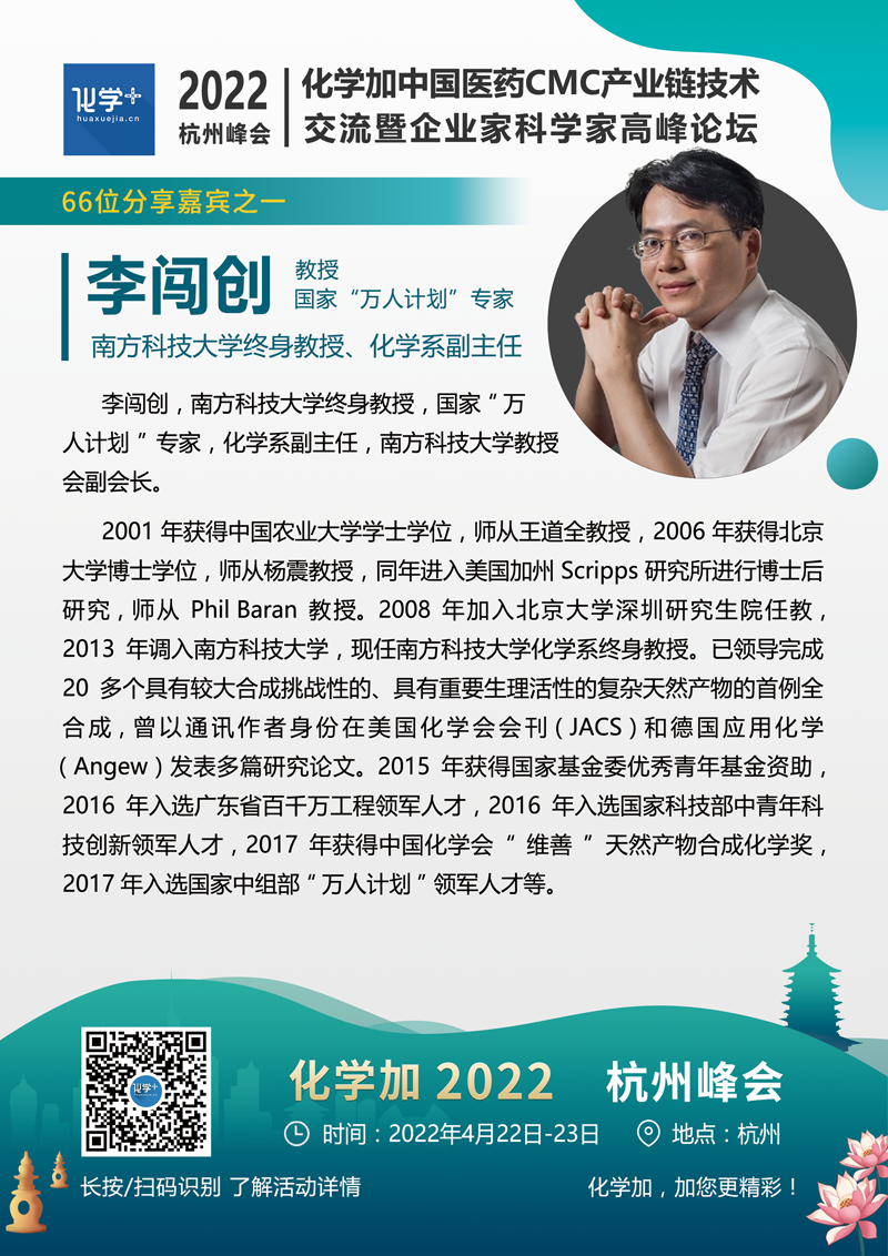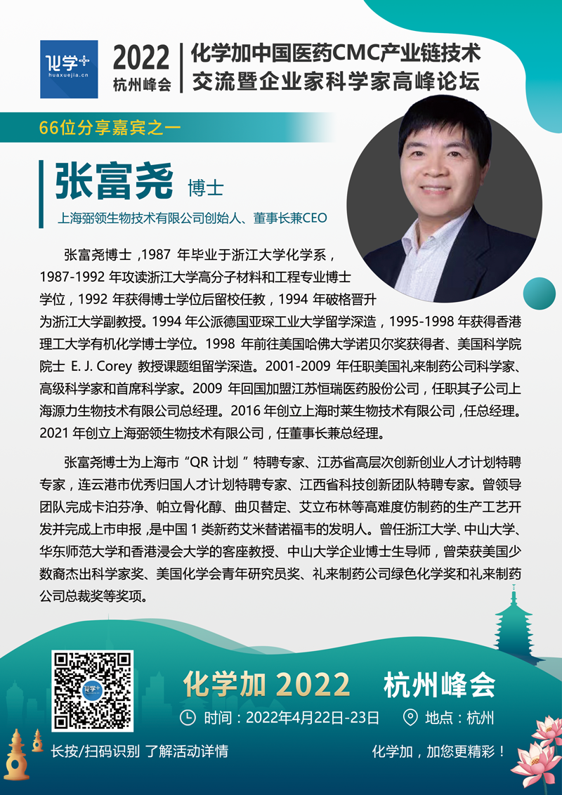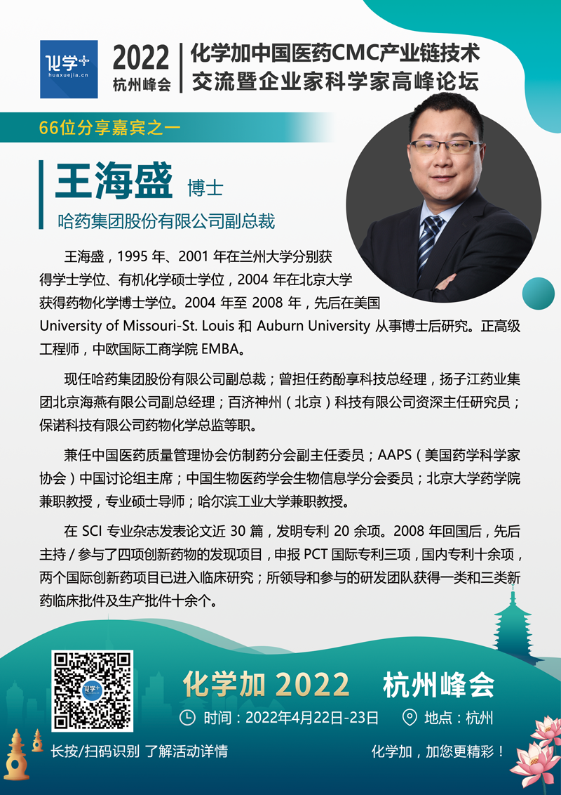 化學(xué)加2022(杭州)中國醫(yī)藥CMC產(chǎn)業(yè)鏈技術(shù)交流暨企業(yè)家科學(xué)家高峰論壇將于4月22-23日在杭州舉辦。主要面向制藥產(chǎn)業(yè)創(chuàng)新藥研發(fā)企業(yè)(包括小分子大分子/ADC藥物/雙抗藥物企業(yè))、CXO企業(yè)、以及實(shí)驗(yàn)室建設(shè)/安全運(yùn)營、綠色化學(xué)合成領(lǐng)域從業(yè)者。著重高層次前瞻技術(shù)研判、一線運(yùn)營管理經(jīng)驗(yàn)分享,藥學(xué)/臨床/制劑-CRO/CMO/CDMO服務(wù)創(chuàng)新合作對接,及部分優(yōu)質(zhì)藥化項(xiàng)目產(chǎn)學(xué)研金融資源路演對接合作。本次峰會(huì)規(guī)模約800-1000人,熱烈歡迎藥物研發(fā)/生產(chǎn)企業(yè),CRO/CMO/CDMO服務(wù)企業(yè),原料藥/中間體/精細(xì)化工企業(yè),實(shí)驗(yàn)室建設(shè)/運(yùn)營管理企業(yè),基金投行人士,及產(chǎn)業(yè)集群&功能定位明確的園區(qū)招商運(yùn)營方報(bào)名參會(huì)。