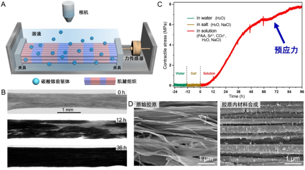 圖1 膠原內(nèi)材料合成產(chǎn)生兆帕級(jí)收縮應(yīng)力