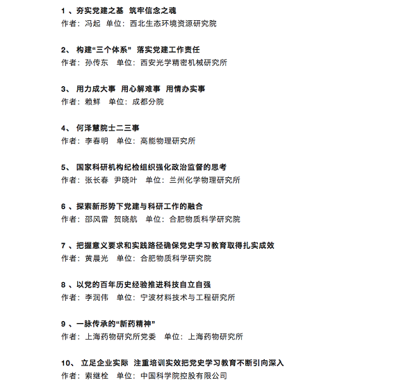 《科苑黨建》2021年度“最受讀者歡迎文章”