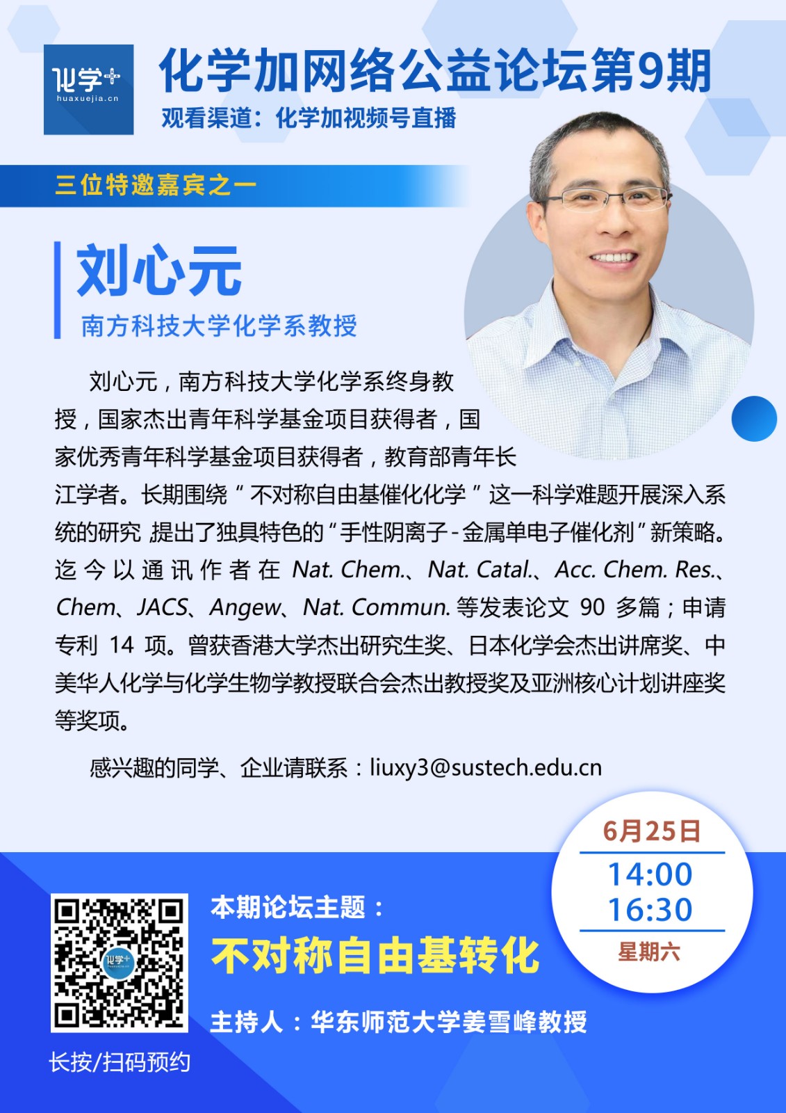 劉心元 南方科技大學化學系教授、國家杰青:手性陰離子銅催化不對稱自由基化學