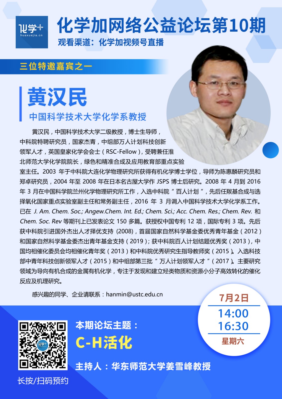 黃漢民 中國科學技術(shù)大學化學系教授、國家杰青:碳氫金屬化及其催化轉(zhuǎn)化