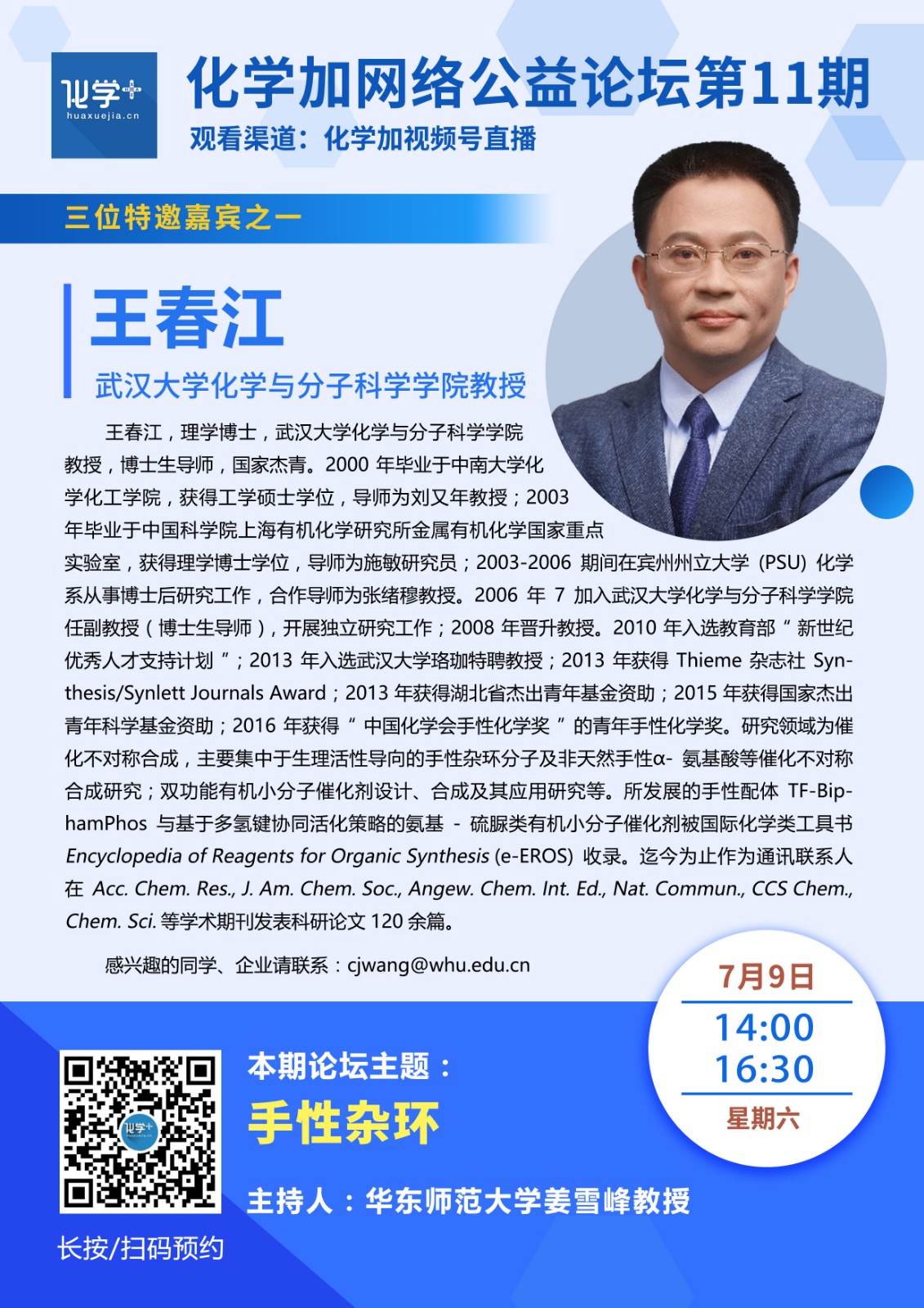 王春江 武漢大學化學與分子科學學院教授、國家杰青:基于協(xié)同催化策略構(gòu)建手性雜環(huán)