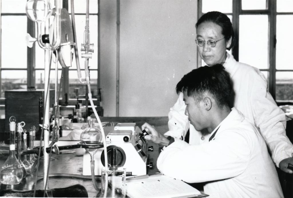 當(dāng)化學(xué)系的教學(xué)工作逐步走向正軌以后,系里的科研工作也隨之展開,并提出教研相長(zhǎng)的辦學(xué)思路。陶慰孫充分發(fā)揮以前的科研工作經(jīng)驗(yàn),開始將目光瞄向研究工作上。她利用東北盛產(chǎn)糧食的自然優(yōu)勢(shì),因地制宜,開展植物蛋白方面的研究。為滿足科研工作和學(xué)科未來發(fā)展的需要,在她的積極策劃和領(lǐng)導(dǎo)下,1959年,化學(xué)系增設(shè)生物化學(xué)專業(yè),這為生物化學(xué)專業(yè)的教學(xué)和研究工作提供了組織上的保證,使吉林大學(xué)化學(xué)系成為國(guó)內(nèi)最早建立生物化學(xué)專業(yè)的化學(xué)系之一。1960年,陶慰孫等人在生物化學(xué)專業(yè)的基礎(chǔ)上,成立生物學(xué)系,下設(shè)生物化學(xué)專業(yè)和生物物理專業(yè)。建系初始,面對(duì)師資短缺的局面,陶慰孫一方面組織從北京大學(xué)、中山大學(xué)和山東大學(xué)等院校分配來的年輕教師開設(shè)課程,另一方面還聘請(qǐng)吉林師范大學(xué)的專業(yè)教師來校兼職,很快就使生物系的教學(xué)走上正軌。1962年因教育部進(jìn)行院系調(diào)整,吉林大學(xué)取消了生物系,生物化學(xué)專業(yè)被保留,并重新回到化學(xué)系。