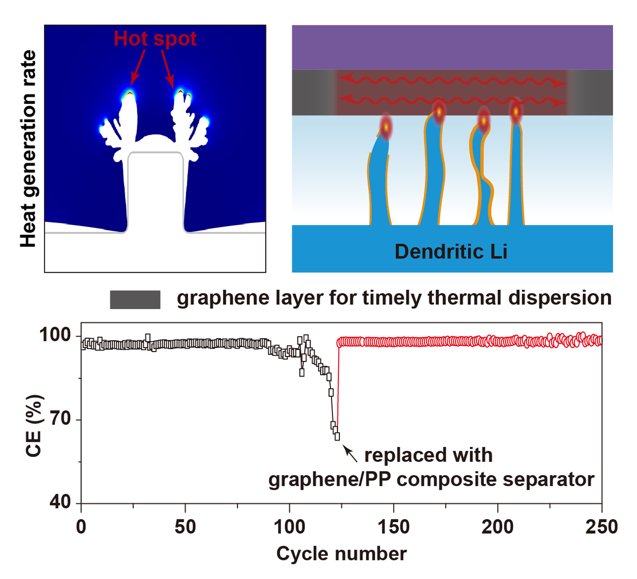 針對(duì)上述問題,西安交通大學(xué)化工學(xué)院唐偉教授團(tuán)隊(duì)與新加坡A*STAR材料研究工程研究所劉兆林教授、上??臻g電源研究所總研究師解晶瑩合作,聯(lián)合報(bào)道了一種基于鋰沉積熱力學(xué)行為的熱導(dǎo)性隔膜抑制鋰枝晶策略。