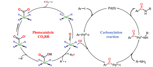 圖2.光催化CO2還原與鈀催化羰基化反應的串聯(lián)反應歷程