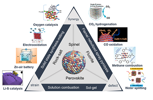 本綜述中,吳忠?guī)泩F(tuán)隊(duì)系統(tǒng)總結(jié)了高熵氧化物在化學(xué)催化領(lǐng)域的研究進(jìn)展,并對(duì)其在能源催化轉(zhuǎn)化方向的未來挑戰(zhàn)進(jìn)行了前瞻性展望。該綜述首先總結(jié)了高熵氧化物催化劑的設(shè)計(jì)與結(jié)構(gòu)調(diào)控,以及其在經(jīng)典熱催化(CO氧化和CO2加氫)和電催化方向(電解水制氫、燃料電池、有機(jī)/無機(jī)物電氧化)的應(yīng)用進(jìn)展;其次,剖析了高熵氧化物催化劑的物化性質(zhì)與催化性能間的構(gòu)效關(guān)系和反應(yīng)催化機(jī)制,闡明了高熵氧化物及其衍生催化劑在催化領(lǐng)域的獨(dú)特優(yōu)勢(shì)及提升策略;最后,討論了高熵氧化物的精準(zhǔn)制備及其在化學(xué)催化應(yīng)用方面存在的諸多挑戰(zhàn)和未來的發(fā)展方向,希望推動(dòng)其在催化和能源轉(zhuǎn)化等領(lǐng)域的廣泛應(yīng)用。