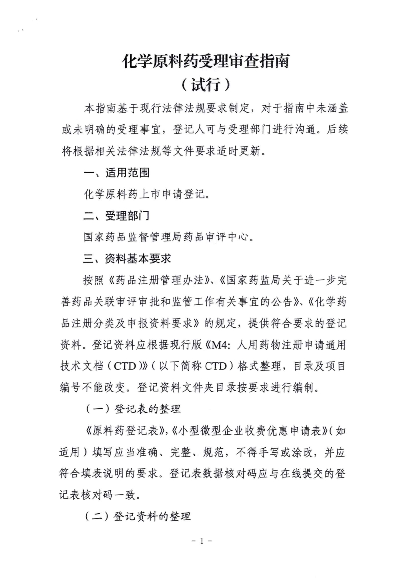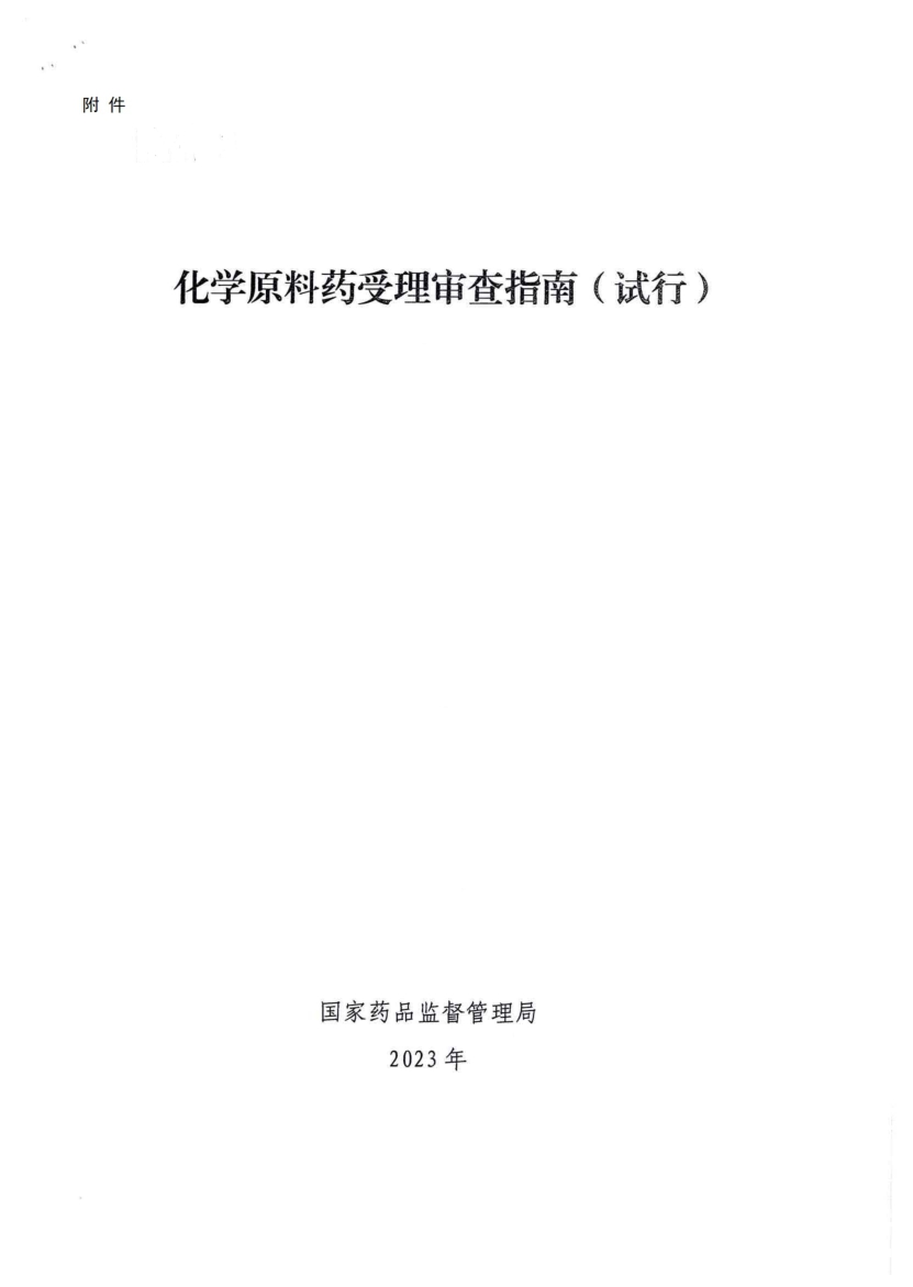 國家藥監(jiān)局藥審中心關(guān)于發(fā)布《化學(xué)原料藥受理審查指南(試行)》的通告(2023年第38號)