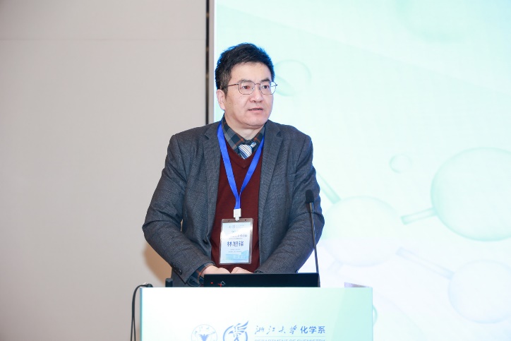 化學(xué)系副系主任林旭鋒教授致開(kāi)幕辭,開(kāi)幕式由化學(xué)系洪鑫教授主持。他向參加此次盛會(huì)的專(zhuān)家和同學(xué)表示熱烈的歡迎,并指出“雙碳”戰(zhàn)略目標(biāo)背景下智能化學(xué)與綠色合成是化學(xué)領(lǐng)域的長(zhǎng)期熱點(diǎn)和難點(diǎn),也是國(guó)家可持續(xù)發(fā)展戰(zhàn)略的重要組成部分。他希望同學(xué)們珍惜此次機(jī)會(huì),充分展示與交流,收獲進(jìn)步與自信。