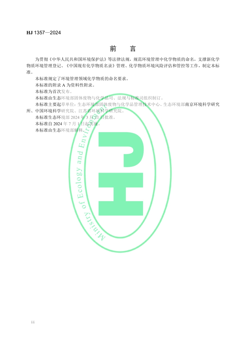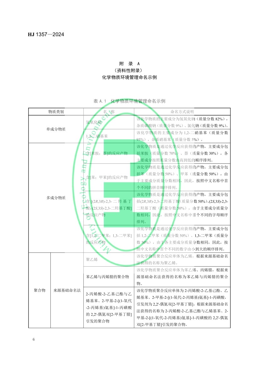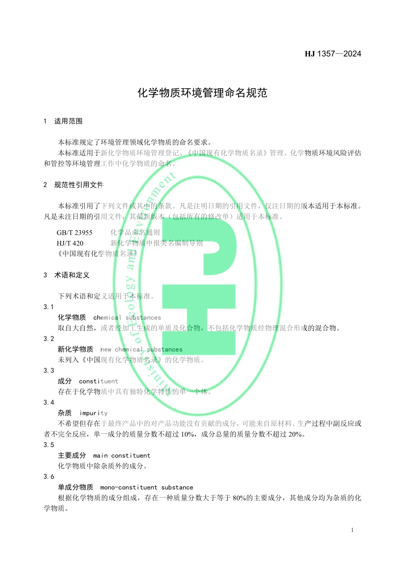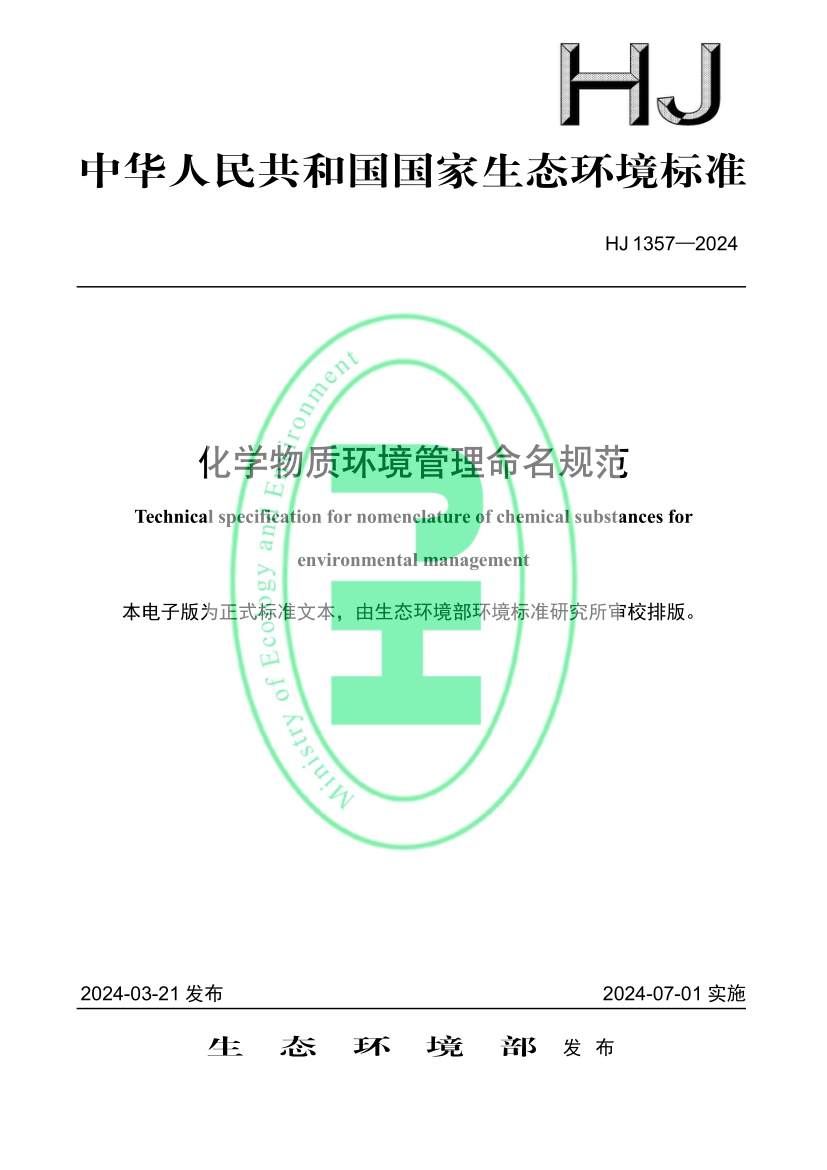 化學物質環(huán)境管理命名規(guī)范(HJ 1357—2024)