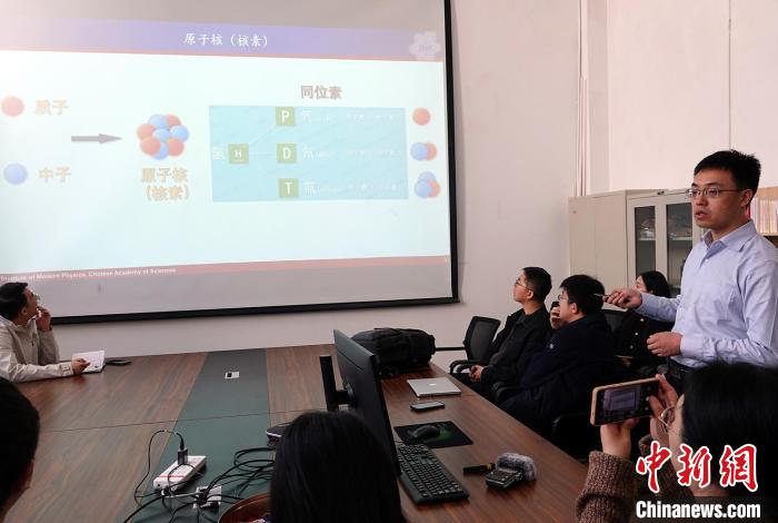 近代物理所超重核與核結構室副主任張志遠科普介紹新核素及新元素合成情況。中新網記者 孫自法 攝