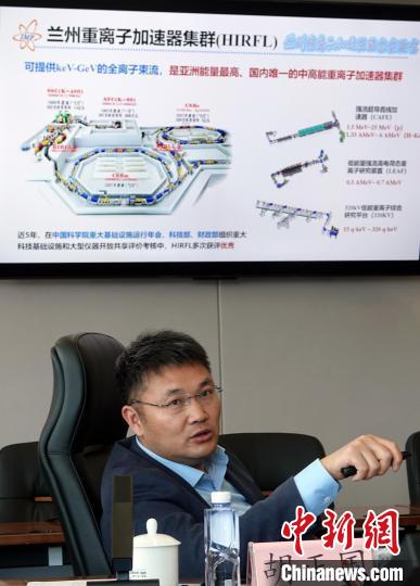 近代物理所黨委書記、副所長胡正國研究員介紹蘭州重離子加速器集群建設情況。中新網記者 孫自法 攝