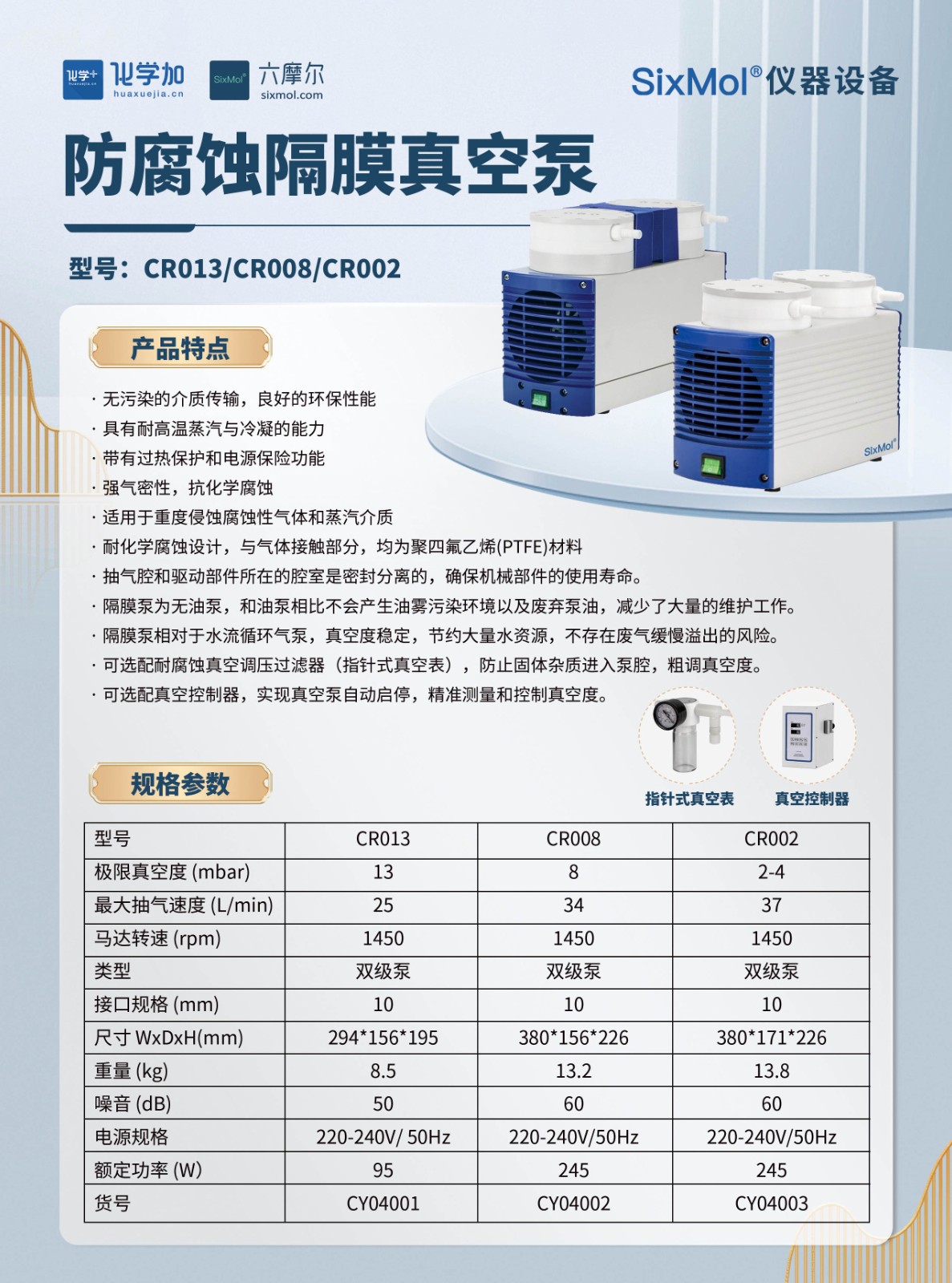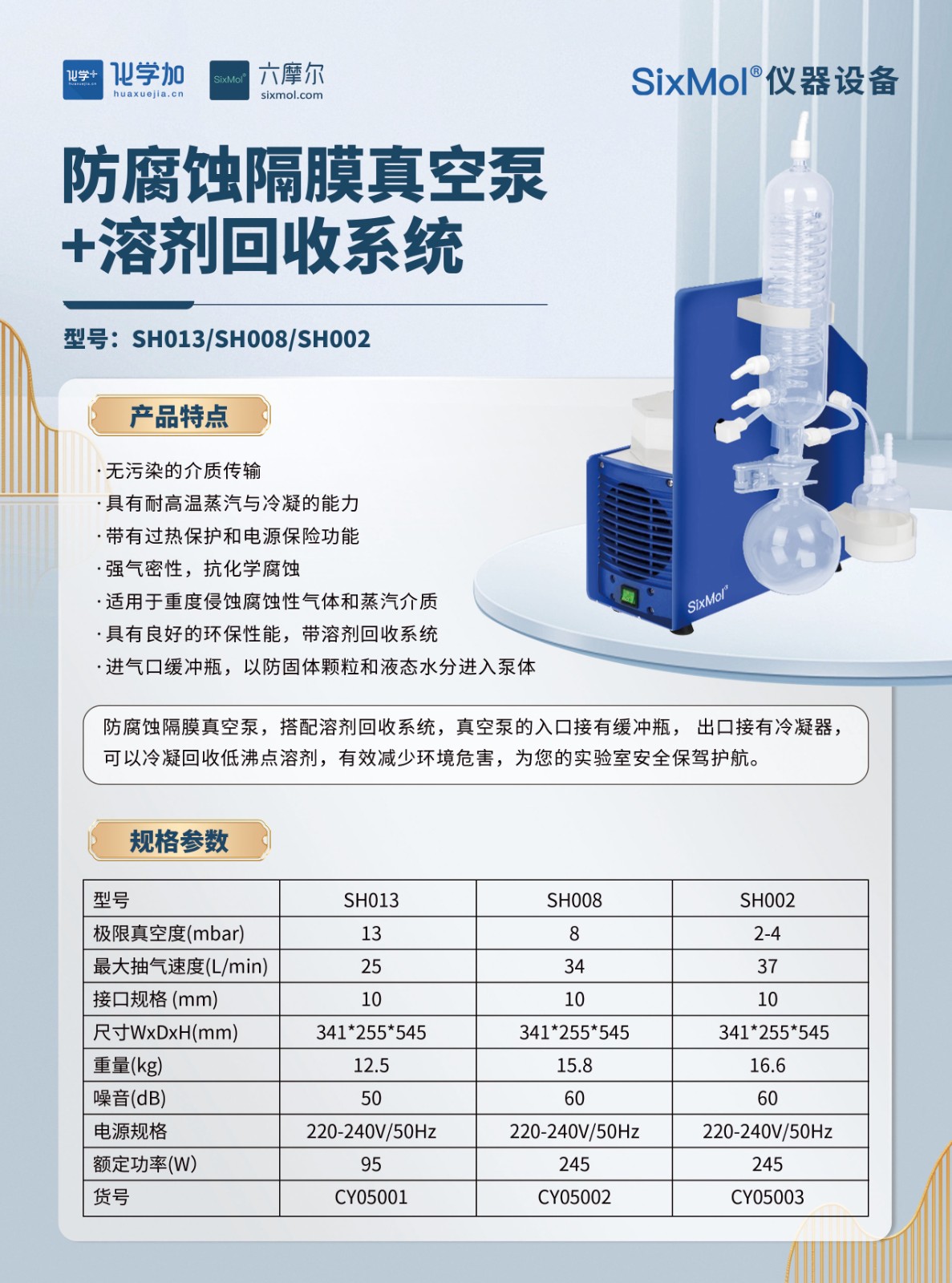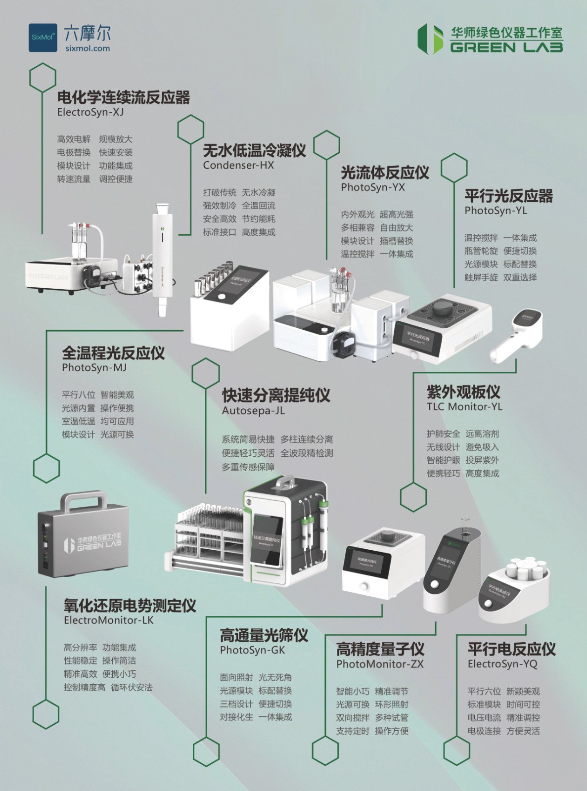 導(dǎo)讀:化學(xué)加SixMol?儀器設(shè)備,主營(yíng)合成化學(xué)產(chǎn)業(yè)高??蒲性核?、企業(yè)研發(fā)實(shí)驗(yàn)室相關(guān)儀器設(shè)備,主要包括加熱磁力攪拌器、旋轉(zhuǎn)蒸發(fā)儀、防腐蝕隔膜真空泵+溶劑回收系統(tǒng)+真空控制系統(tǒng)、旋片式油封真空泵、低溫冷卻液循環(huán)泵、低溫恒溫?cái)嚢璺磻?yīng)浴、全自動(dòng)實(shí)驗(yàn)室器皿清洗機(jī)、小型離心機(jī)、渦旋混勻儀、光化學(xué)反應(yīng)器、電化學(xué)反應(yīng)器、紫外觀板儀、移液槍、平行合成儀、快速分離提純儀等儀器設(shè)備,如有意向歡迎聯(lián)系:18676881059、18676882001。