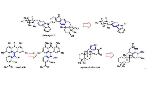 中國科學(xué)院上海有機化學(xué)研究所生命有機化學(xué)國家重點實驗室李昂課題組發(fā)展了環(huán)化/芳構(gòu)化的合成策略,通過自主合成芳環(huán)的方式,解決以上策略性問題,實現(xiàn)了含多取代芳環(huán)的xiamycin家族、clostrubin...
