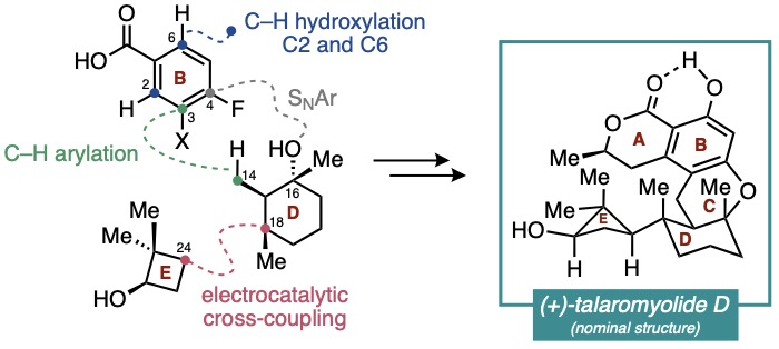 近日,紐約大學(xué)Martin Tomanik課題組實(shí)現(xiàn)了復(fù)雜雜萜(+)-Talaromyolide D標(biāo)稱結(jié)構(gòu)的首次不對稱全合成。該分子具有獨(dú)特的6/6/6稠合二氫異香豆素核心,以及罕見的嵌在四個(gè)連續(xù)手...
