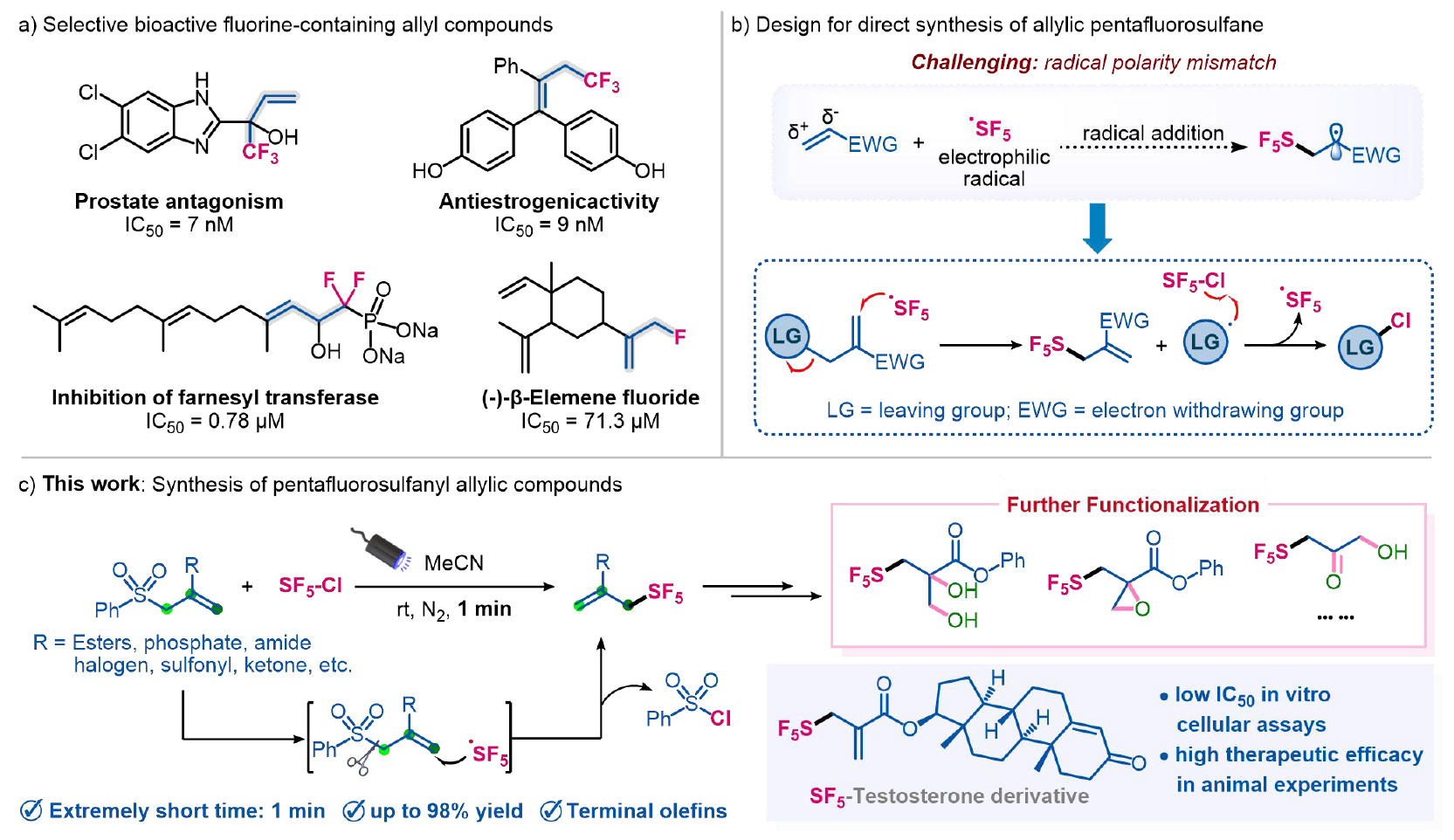 近日,內(nèi)蒙古大學(xué)郭碩研究員和南開(kāi)大學(xué)丁亞輝等人在Science Advances發(fā)表論文,他們合作開(kāi)發(fā)了一種離去基團(tuán)輔助策略快速合成各類五氟硫基(SF5)烯丙基化合物,部分產(chǎn)物在體內(nèi)體外均表現(xiàn)出優(yōu)異的...