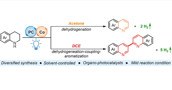南昌大學(xué)黃程/蔡琥課題組報(bào)道了溶劑控制的光/鈷協(xié)同催化N-雜環(huán)無(wú)受體脫氫和脫氫偶聯(lián)芳構(gòu)化反應(yīng)。在該光催化體系中,當(dāng)丙酮作溶劑時(shí),N-雜環(huán)可發(fā)生脫氫芳構(gòu)化反應(yīng)得到雜芳烴產(chǎn)物;當(dāng)溶劑為DCE時(shí),N-雜環(huán)發(fā)...