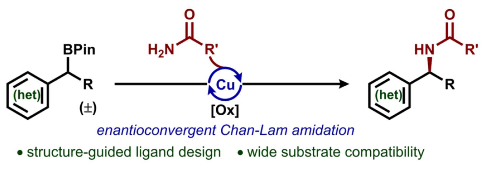 近日,美國科羅拉多州大學(xué)Robert S. Paton與Yuyang Dong團隊報道了一種采用模塊化的烷基頻哪醇硼酸酯為底物,首次實現(xiàn)了對映匯聚性Chan?LamC(sp3)?N偶聯(lián)反應(yīng)。該策略具有...